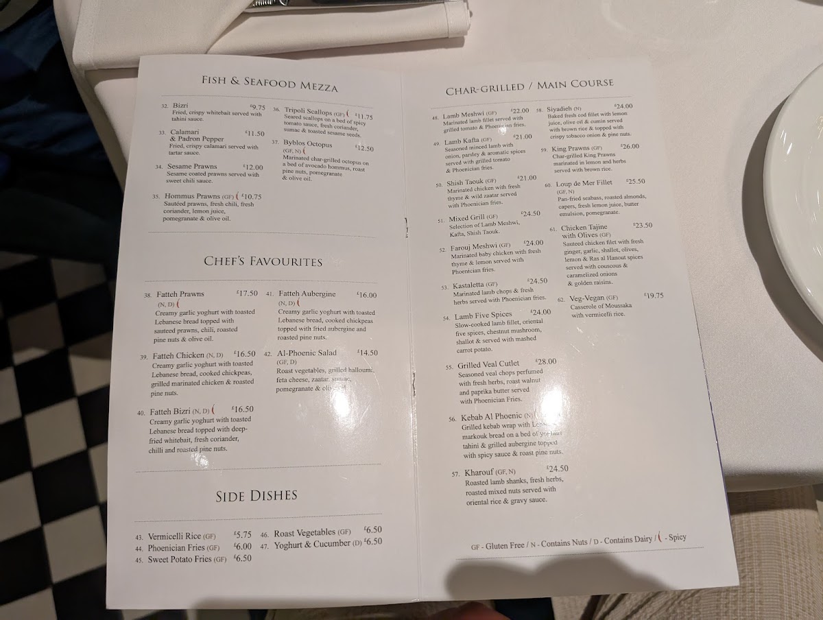 Vegetarian options are more than just an afterthought. The moussaka and mujadara are hearty, flavour-packed choices, proving Al Phoenic’s commitment to inclusive, satisfying dining. For dessert, the baklava is flaky and indulgent without being overly sweet-ideal with a cup of strong Lebanese coffee.